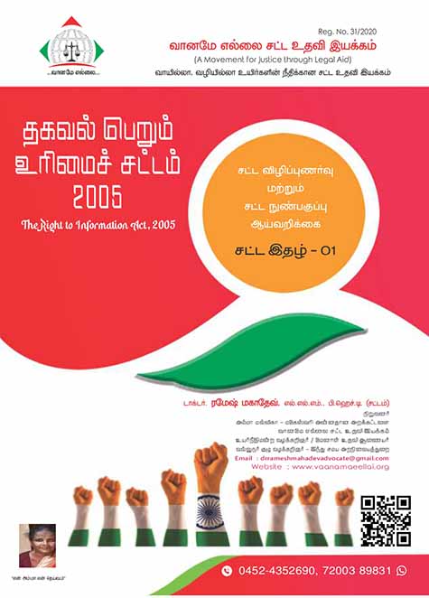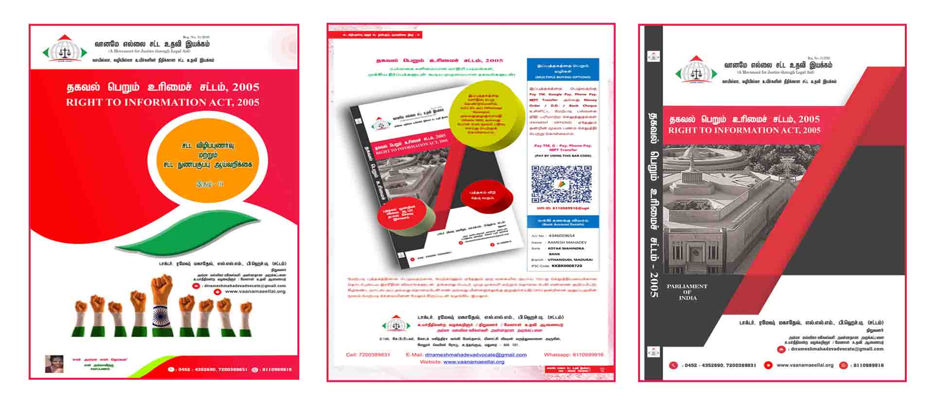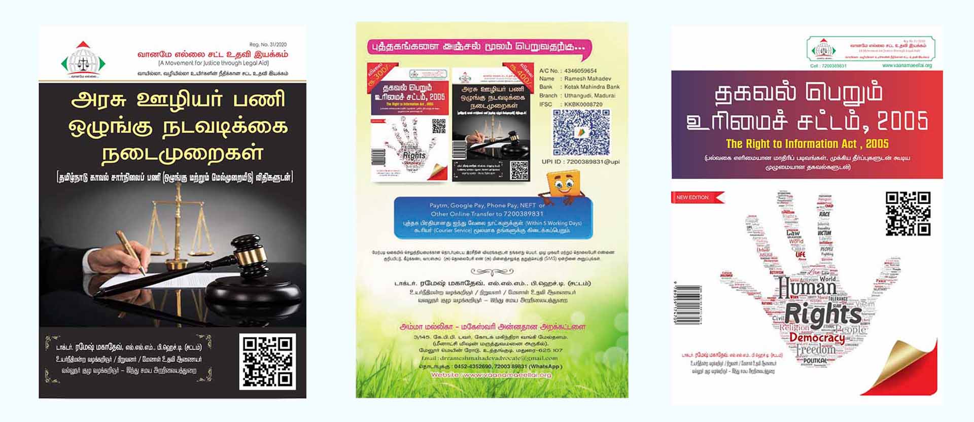 He had also been in govt. service as a DISTRICT LEVEL OFFICER (Group I - ASST. COMMISSIONER - DISTRICT LEVEL SERVICE) for a period of MORETHAN 5 1/2 years in the districts of Pudukkottai and Nagapattinam, H.R.&C.E. (ADMN) Department, Govt. Of Tamil Nadu. Then, he resigned his govt. service and constituted independent law office in Madurai and also started a Legal Aid Foundation (NGO) called as VAANAMAE ELLAI (A Movement for Justice through Legal Aid) (வாயில்லா, வழியில்லா உயிர்களின் நீதிக்கான சட்ட உதவி இயக்கம்) based in Madurai.
